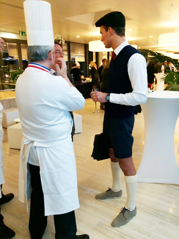 Je travaille pour une compagnie qui non seulement ne connaît pas la crise mais qui sait également récompenser ses employés. Sur le thème de « Back to School », nous nous sommes déguisés en petits écoliers, y compris le Président, pour la soirée de Noël qui s’est déroulée à la prestigieuse école hôtelière de Lausanne créée en 1893. Sous la direction de deux chefs Meilleurs Ouvriers de France reconnaissables au col tricolore de leur veste blanche immaculée, nous nous sommes régalés de mets impeccablement dressés proposés aux buffets d’inspiration asiatique (sushis, sashimis, spécialités chinoises…), italienne (prosciutto et autres charcuteries, risotto aux champignons…) et française (mention spéciale au dos de canard Rossini recouvert de foie gras et de copeaux de truffe blanche finement râpée) avant de nous ruer sur la multitude de desserts, le tout arrosé de champagne, de vins blancs et rouges ainsi que de jus d’orange et d’eau minérale pour ceux qui conduisaient.