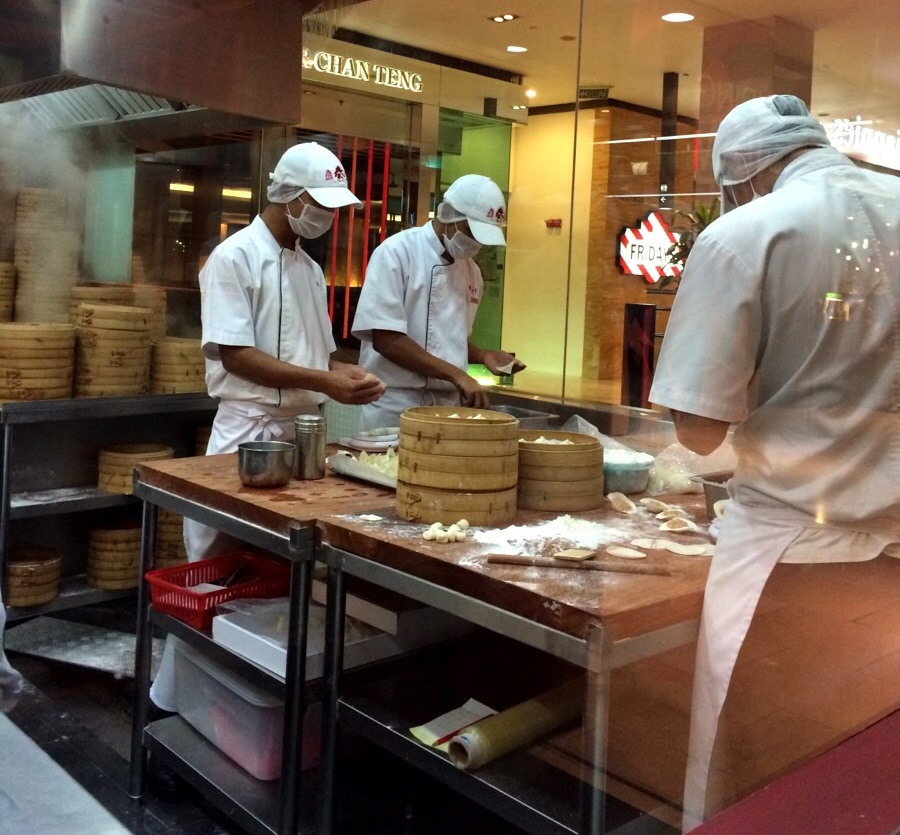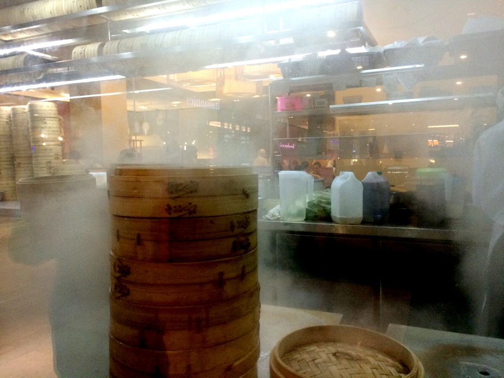 Au dernier étage du très chic centre commercial Pavilion du quartier de Bukit Bintang à Kuala Lumpur, nous nous sommes laissés tenter, Lui et moi, par le restaurant Din Tai Fung, intrigués par le spectacle des cuisiniers que l’on voyait s’affairer derrière d’énormes volutes de vapeur. Dans une vaste salle sans chichis à l’allure de fast-food asiatique, nous avons griffonné notre choix sur la carte des menus sans savoir que nous avions découvert une pépite !