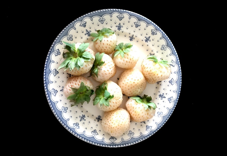 Pour sortir de la routine, quoi de mieux que d’élargir sa palette de saveurs avec des nouveaux produits ? De passage chez Globus, je suis tombée sur ces fraises ananas (fragaria ananassae), qui n’est pas issue d’un croisement génétique entre une fraise et un ananas mais qui est la plus ancienne variété de fraises cultivées en Europe. Elle fut en effet importée du Chili il y a 300 ans par l’officier du génie maritime Amédée-François Frézier et on en trouvait dans les jardins du Roi Soleil à Versailles. Je ne dirais pas que c’est la meilleure fraise que j’ai mangée de ma vie mais sa couleur blanche et son léger parfum d’ananas sont étonnants et particuliers.