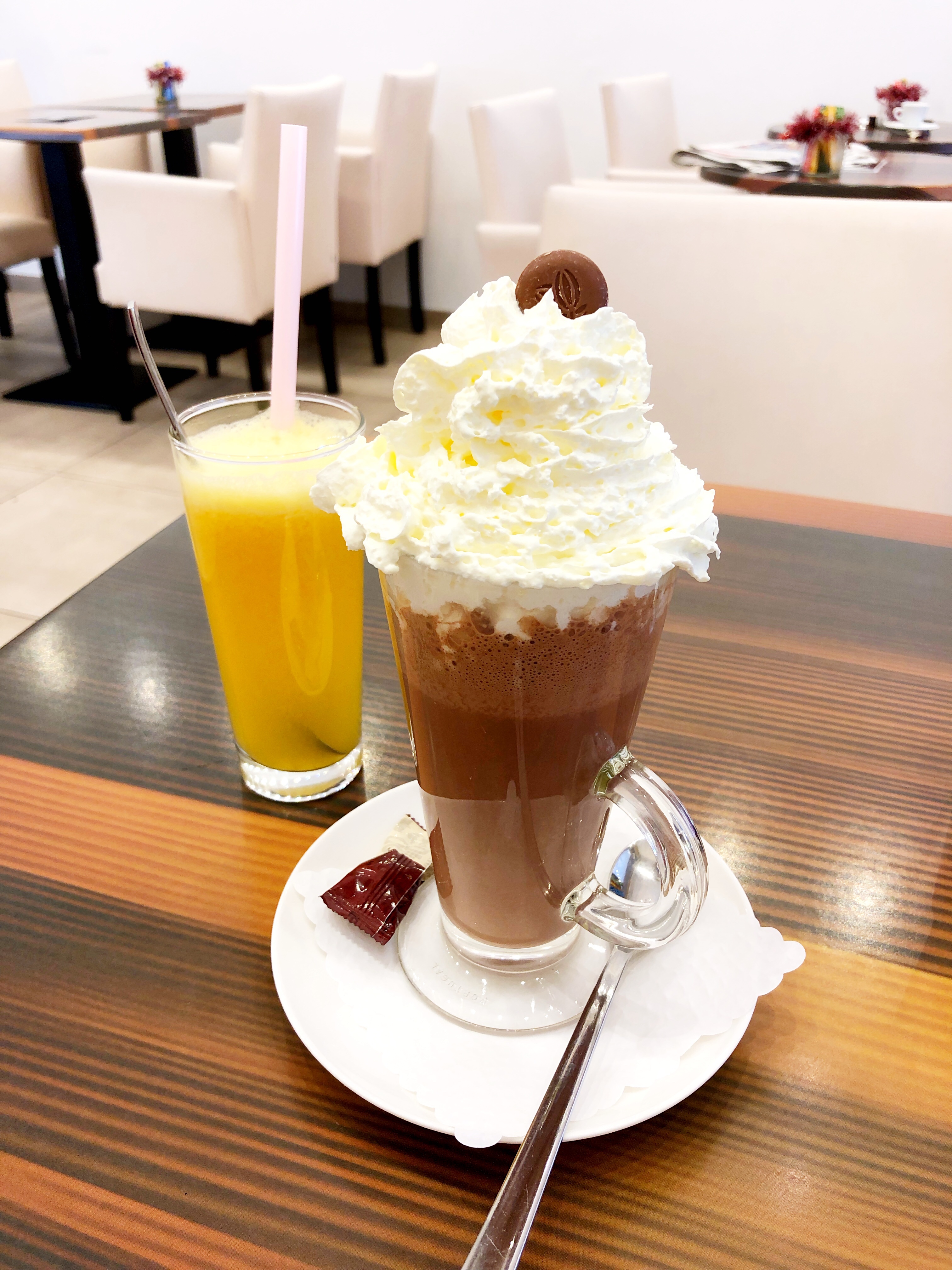 La saison se prête au chocolat chaud alors autant en profiter ! Je me suis arrêtée cette fois à C’chocolat à Montreux pour mon sempiternel combo chocolat maison et orange pressée dans un joli cadre minimaliste.