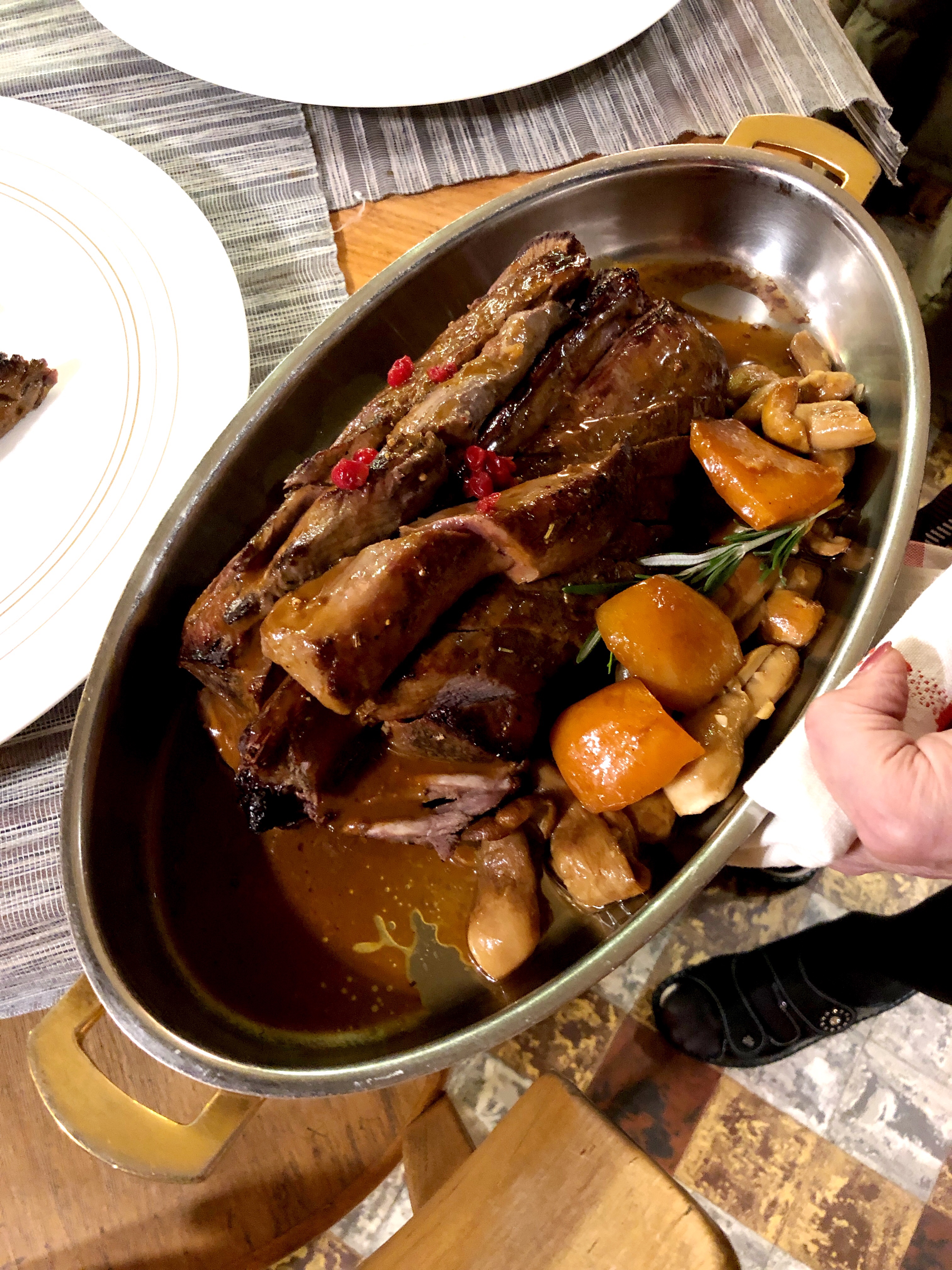 Le restaurant populaire « Chez Popu » est réputé pour servir de la chasse sauvage et pas d’élevage et la selle de chevreuil rôtie au four entière était l’une des meilleures que j’ai mangées. Précédée d’une crème de courge butternut et d’une salade mixte, elle a été richement agrémentée en deux services de spätzlis maison, de chou rouge et choux de Bruxelles, de marrons pochés dans de la raisinée, une sorte de vin cuit de pomme ou de poire, d’une mini pomme pochée et d’une poire à botzi, poire à cuire du Canton de Fribourg, confites au sirop. Une vraie bonne adresse !