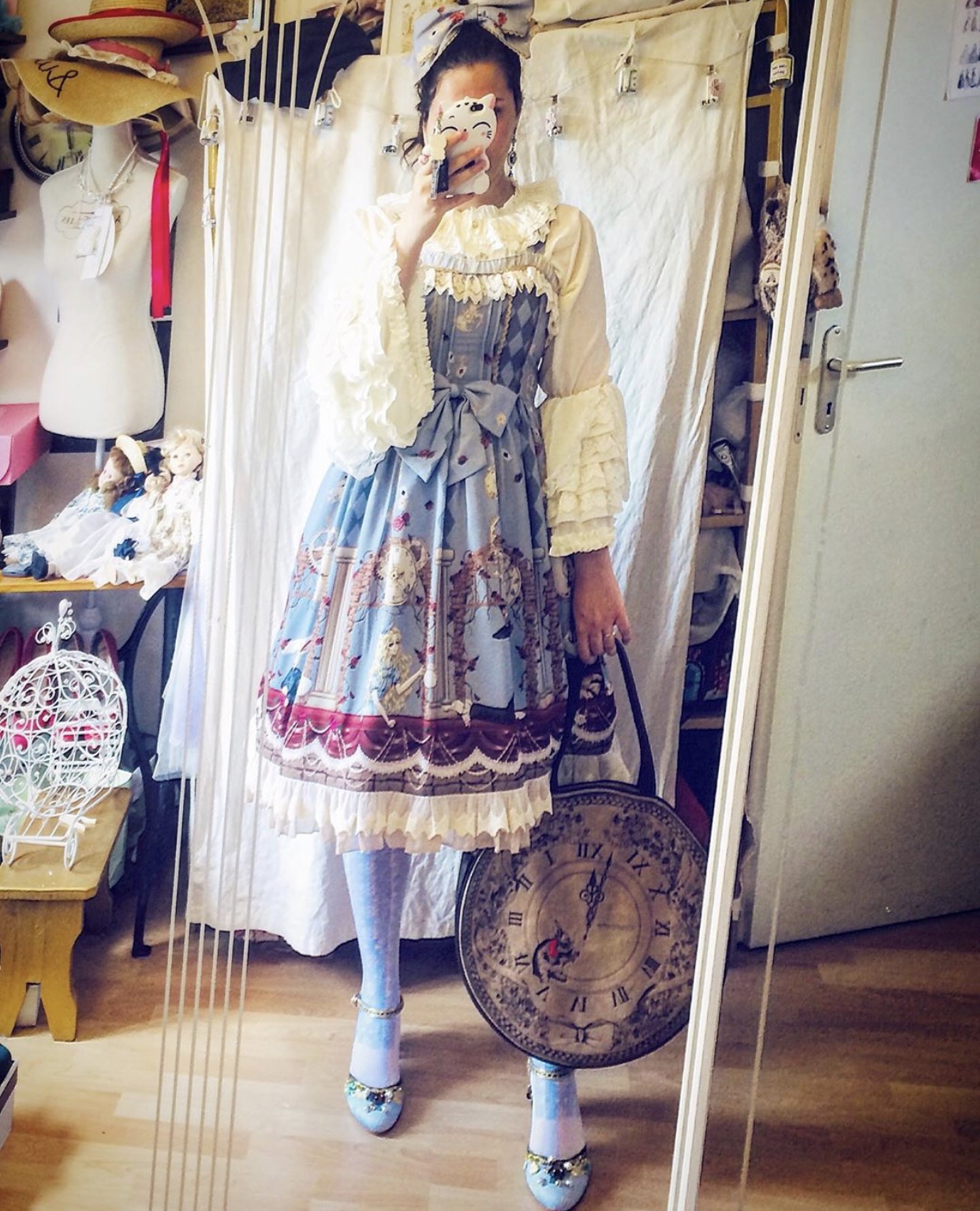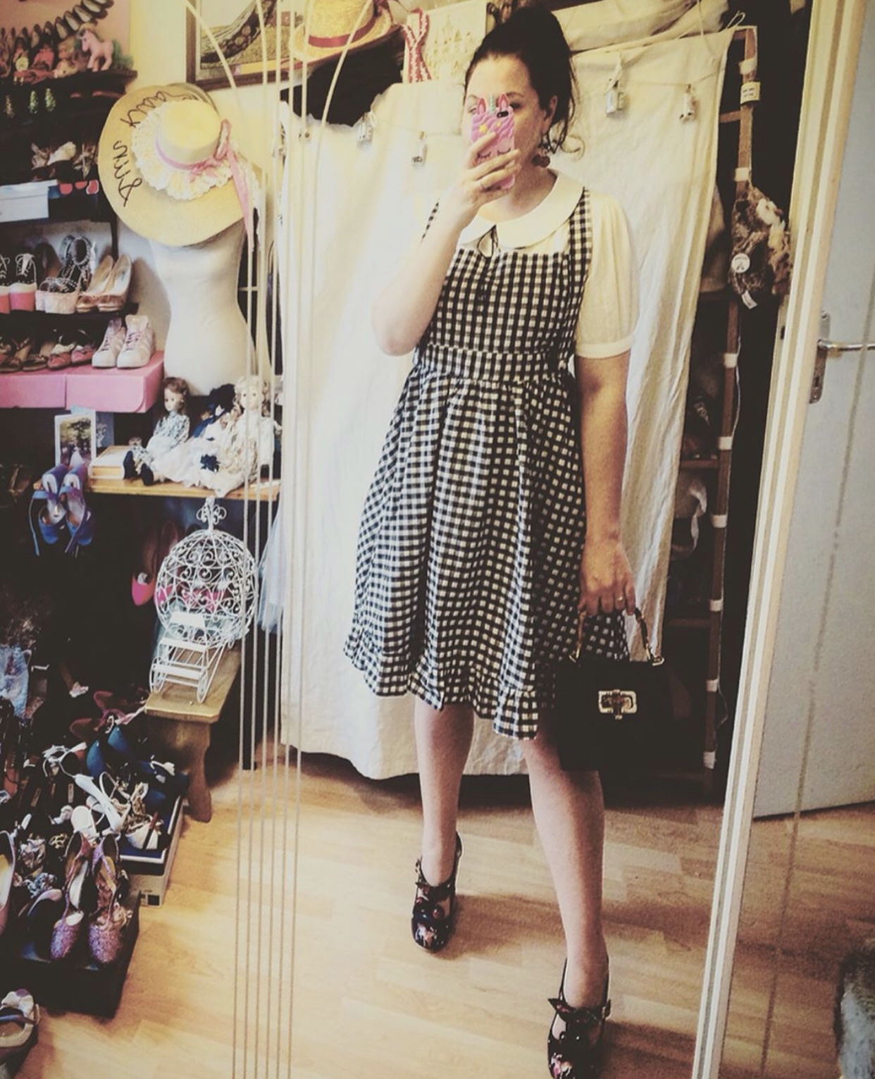 Contrairement à moi surtout, elle ose ! Elle assume totalement un style girly et glamour qui lui est propre, composé pour la plupart de robes colorées en dentelle, en velours, en satin, en tulle qu’elle agrémente avec des sacs à main à tête d’ange, à l’effigie de licorne ou de cactus et de chaussures qui réjouiraient la Marie-Antoinette de Sofia Coppola !