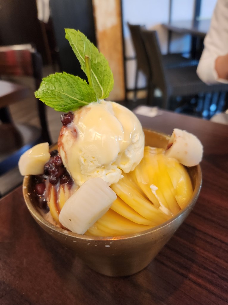Ce que je retiens personnellement, c’est le bingsu, la glace traditionnelle coréenne aussi légère que de la neige servie en dessert avec des fruits frais ! C’est la première fois que j’en vois en Suisse et celle de Dotori est vraiment excellente, bien meilleure que celle de Sulbing à Séoul, un café spécialisé dans les bingsu, c’est dire !